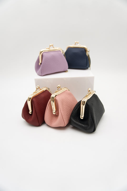 Italian Leather Kiss Lock Coin Purse