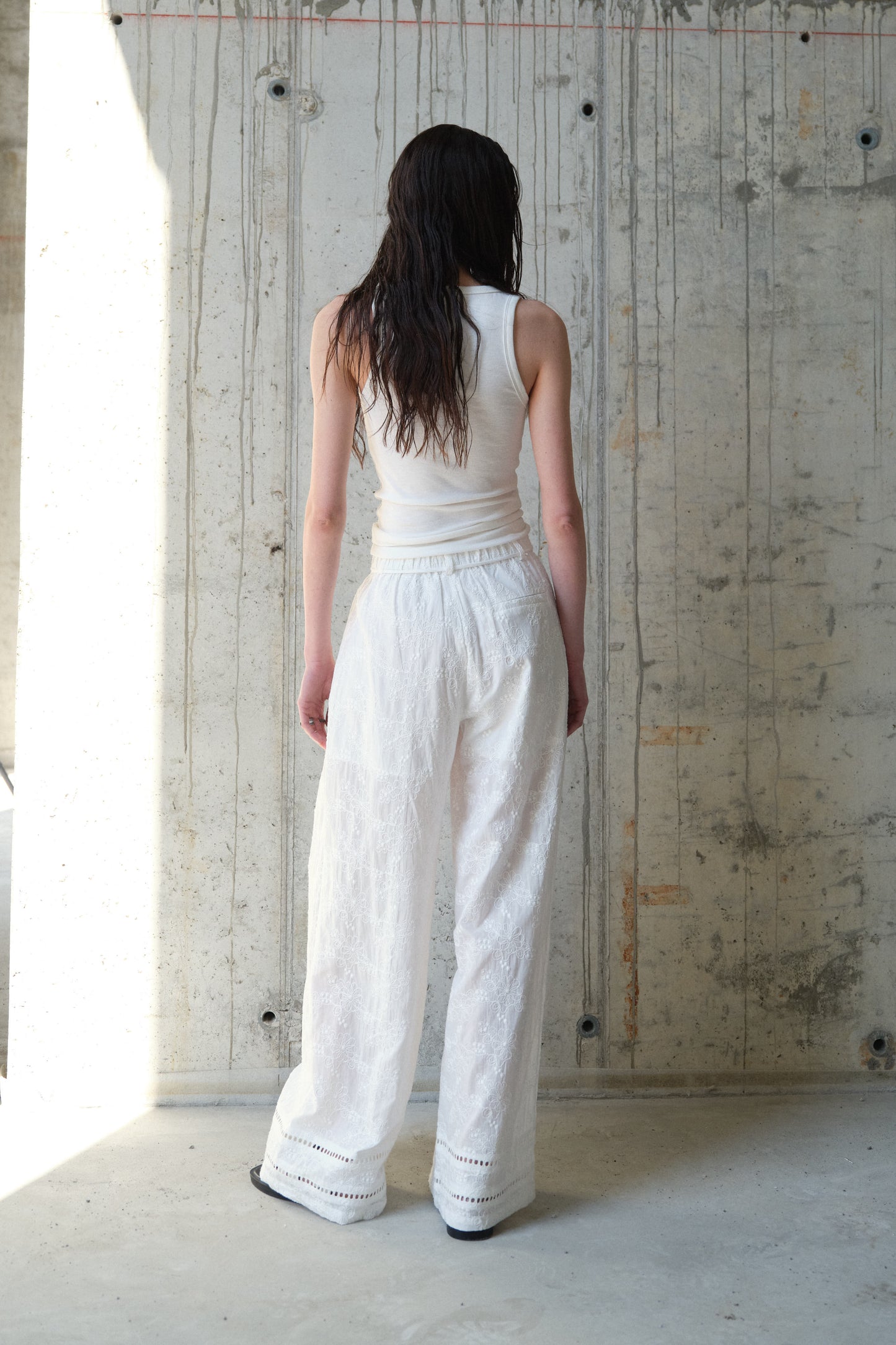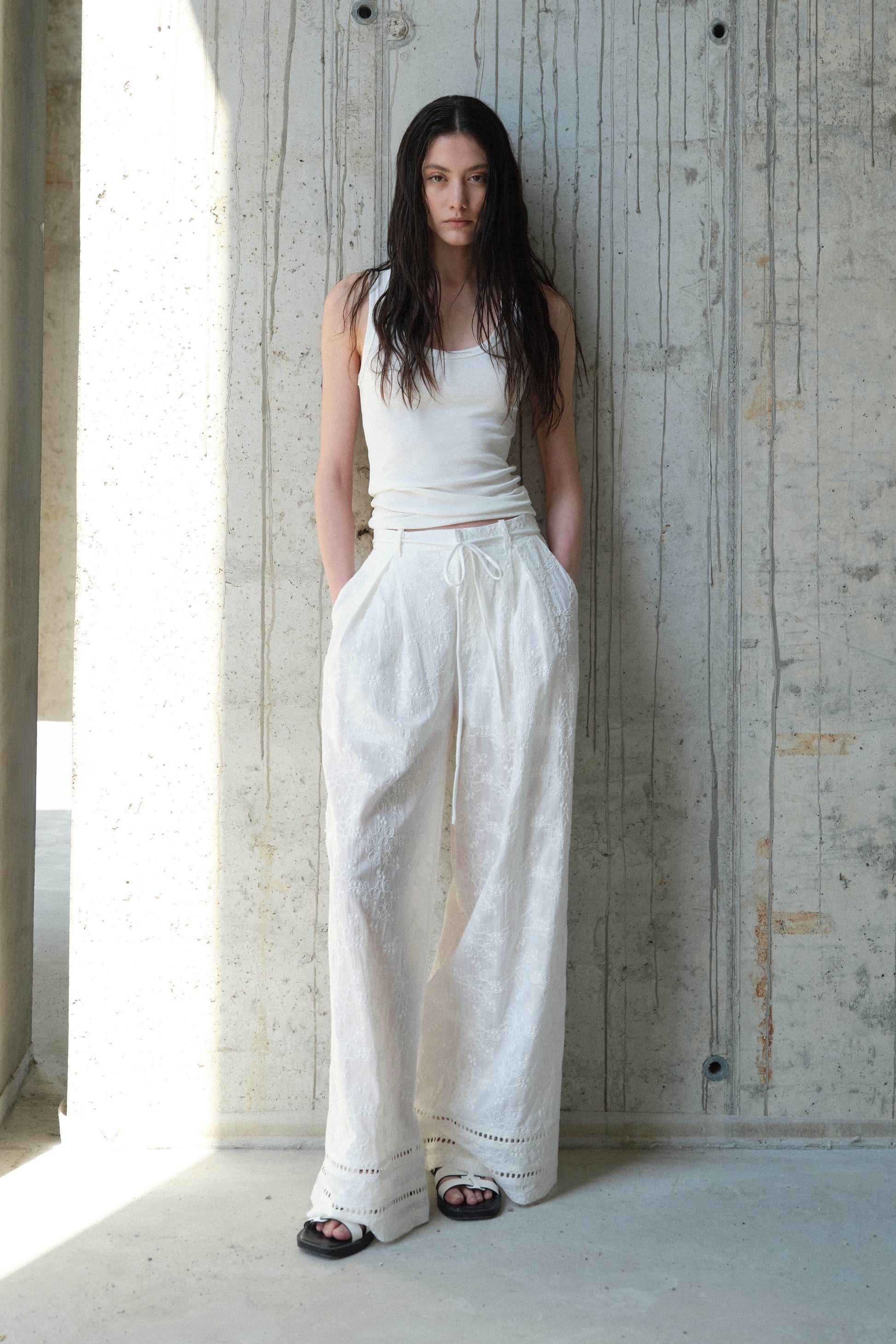 Effortlessly elegant with a touch of whimsy, the Embroidery Tie Detail Trousers bring a fresh take on summer tailoring. Made from 100% cotton with beautifully detailed floral embroidery, these trousers are fully lined with soft shorts to ensure comfort and coverage. The pleated front and relaxed silhouette give a polished yet easy vibe, while the elasticized back waist and removable tie belt offer a flattering, customizable fit. Finished with practical side pockets, belt loops, and a discreet trouser hook and zip closure — they're the perfect blend of structure and softness. Perfectly matches the Tie Front Embroidery Top.