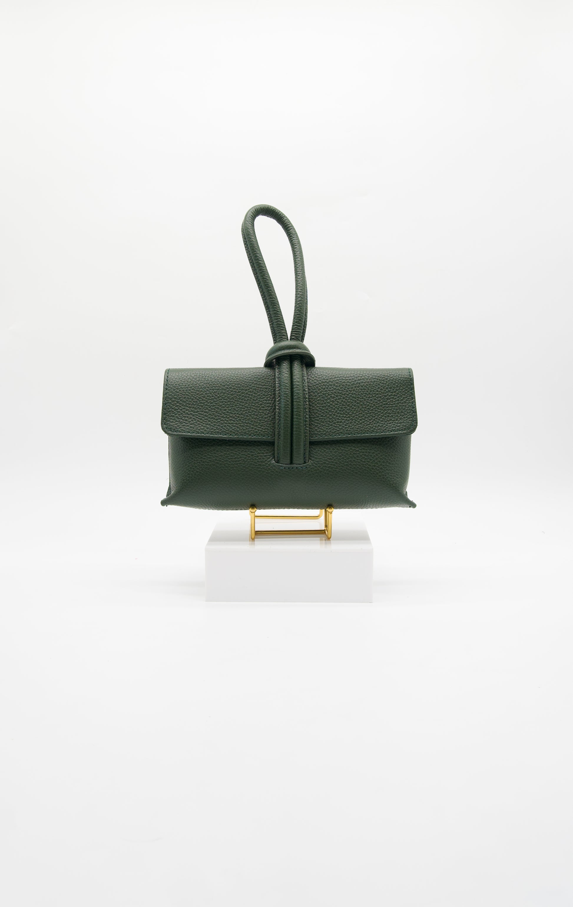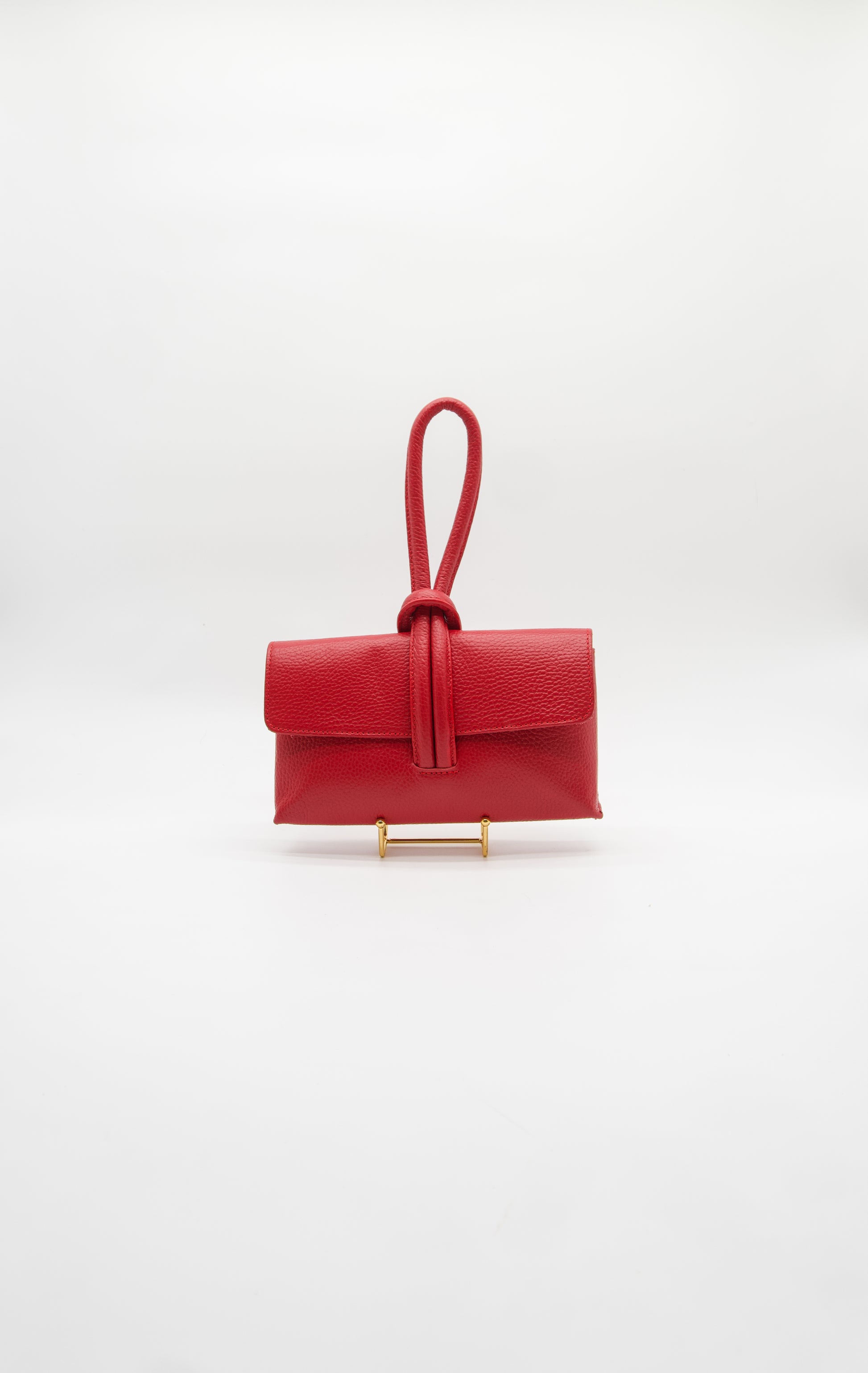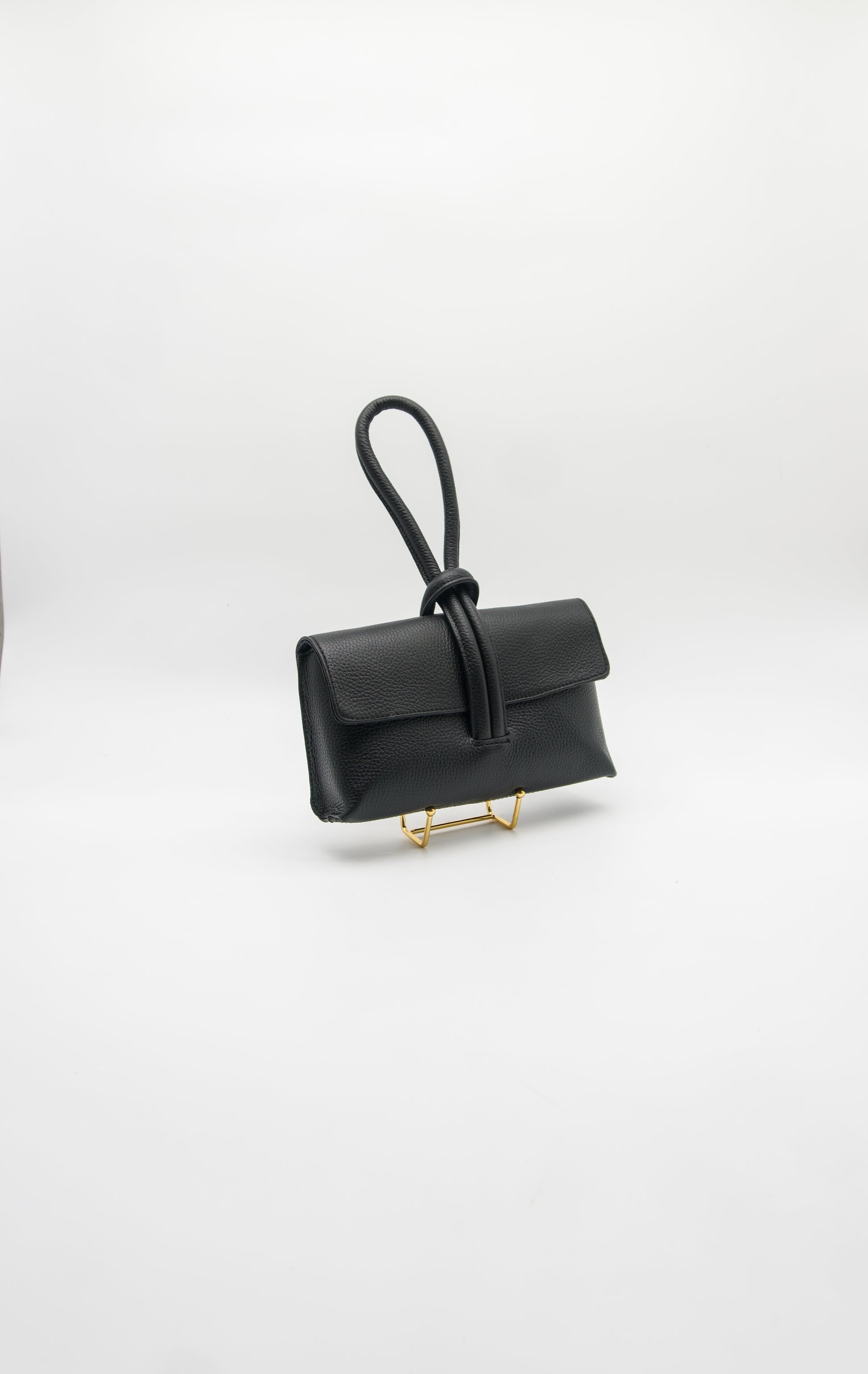 Chic and versatile, this elegant leather clutch is the perfect accessory for any occasion. Featuring a unique knotted handle detail, this bag adds a stylish twist to a classic silhouette. Crafted from luxurious leather, it comes with an additional detachable strap, allowing you to effortlessly switch from clutch to crossbody for hands-free convenience. The interior is thoughtfully designed with a secure zipper pocket to keep your essentials organized, while the sleek silver hardware adds a polished touch. Perfect for day or night, this clutch is both functional and fashion-forward