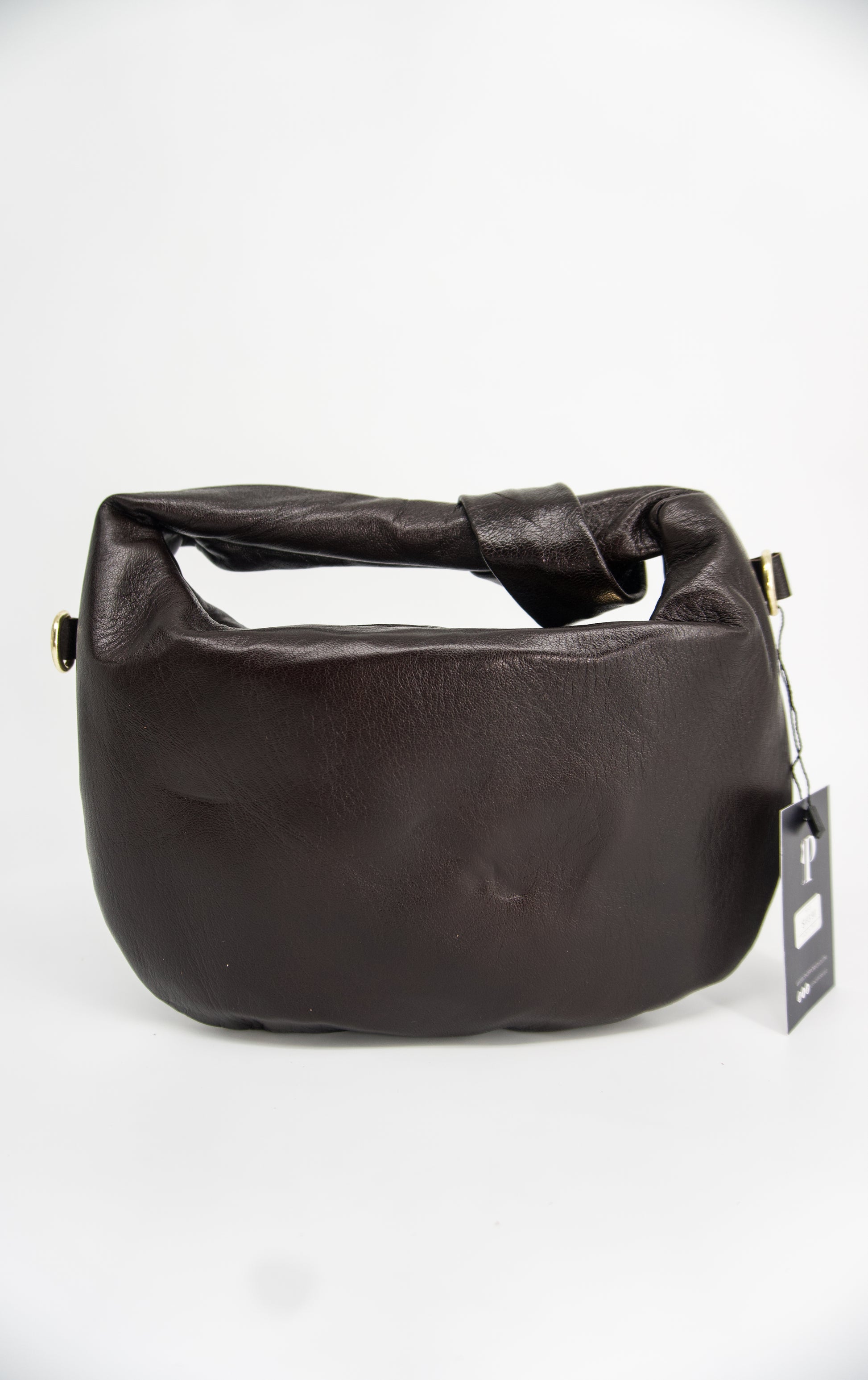 Elegant and unique, the Ambra Sauvage Leather Crescent Handbag brings a fresh twist to a timeless silhouette. Its crescent shape and chic knotted handle detail make it a standout accessory, while the soft, smooth sauvage leather adds a luxurious touch. Designed for versatility, it comes with a detachable crossbody leather strap, allowing you to carry it effortlessly from day to evening. Perfect for special occasions or events out, this handbag is both stylish and functional..