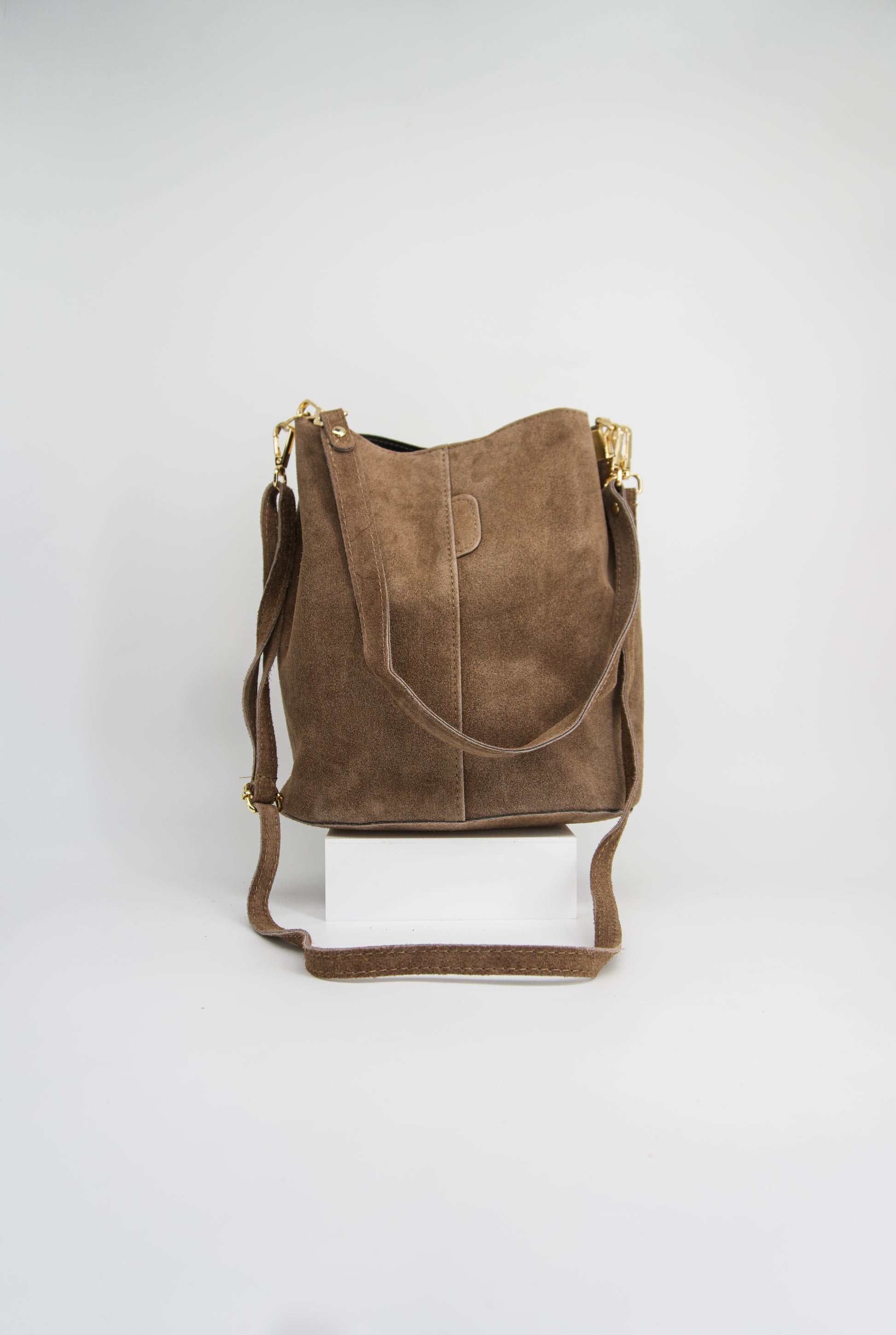 Chic and refined, the Viviana Italian Suede Bucket Bag is a timeless addition to your fall wardrobe. Crafted from luxurious Italian suede, this elegant bucket silhouette features two strap options—a short handle and a detachable crossbody strap—for effortless versatility. The bag secures with a snap closure and opens to a thoughtfully designed interior with two compartments and a center zipper pocket to keep your essentials neatly organized. Stylish yet practical, the Viviana brings understated sophistication to any look, from weekday outings to weekend plans.