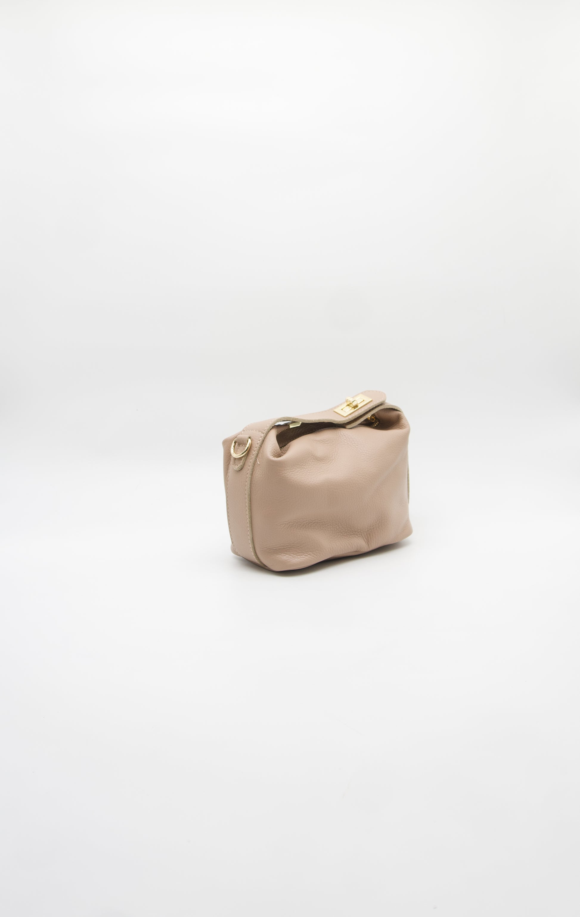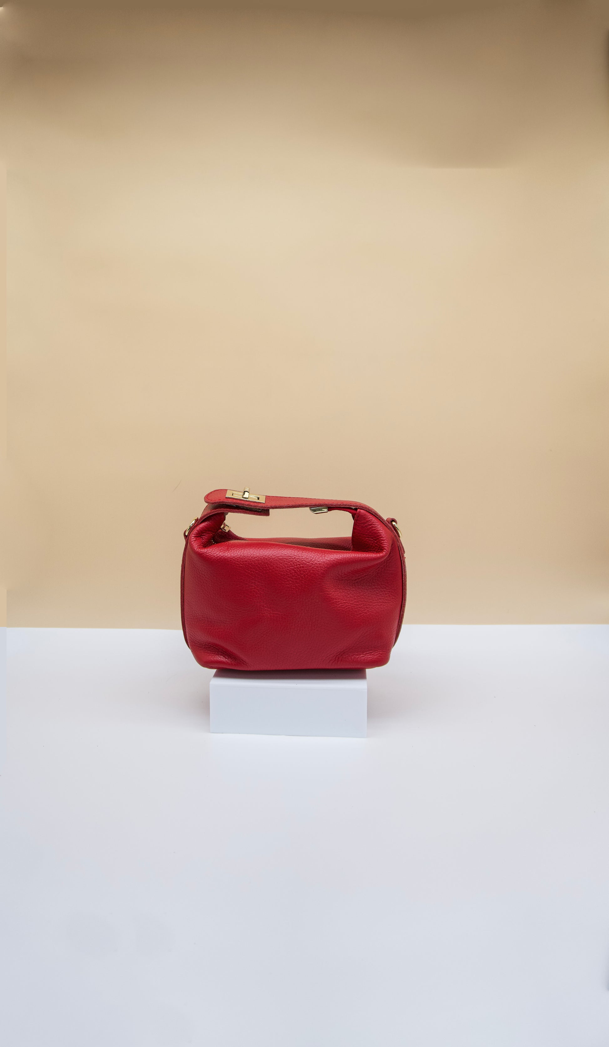 The Zara Top Handle Leather Handbag combines chic style with functionality, featuring a pouch design that opens with a secure hardware turn clasp and includes a zipper closure. Its scrunch effect adds a touch of elegance, while the interior zipper pocket provides ample space for your essentials, making it small yet spacious. Complete with an additional crossbody strap, this handbag is perfect for a stylish night out.